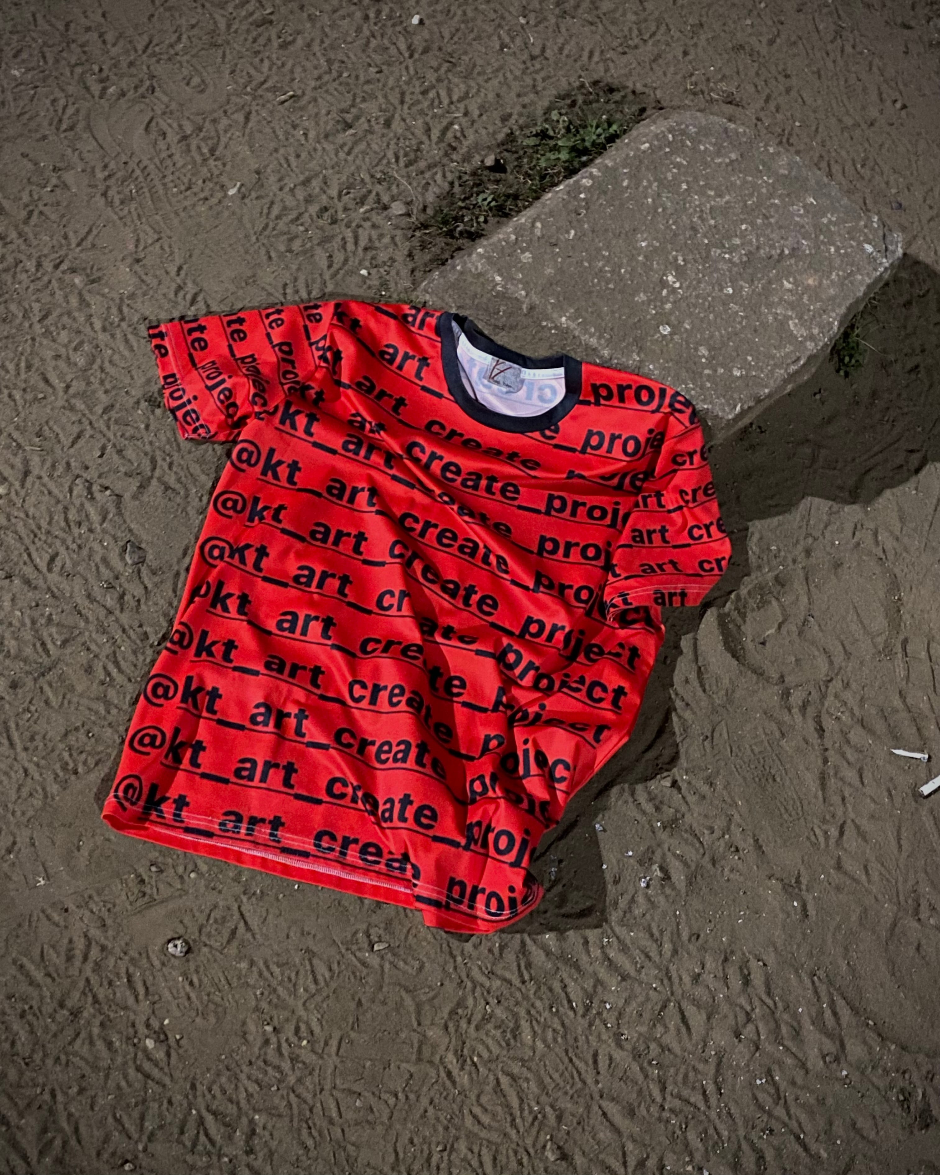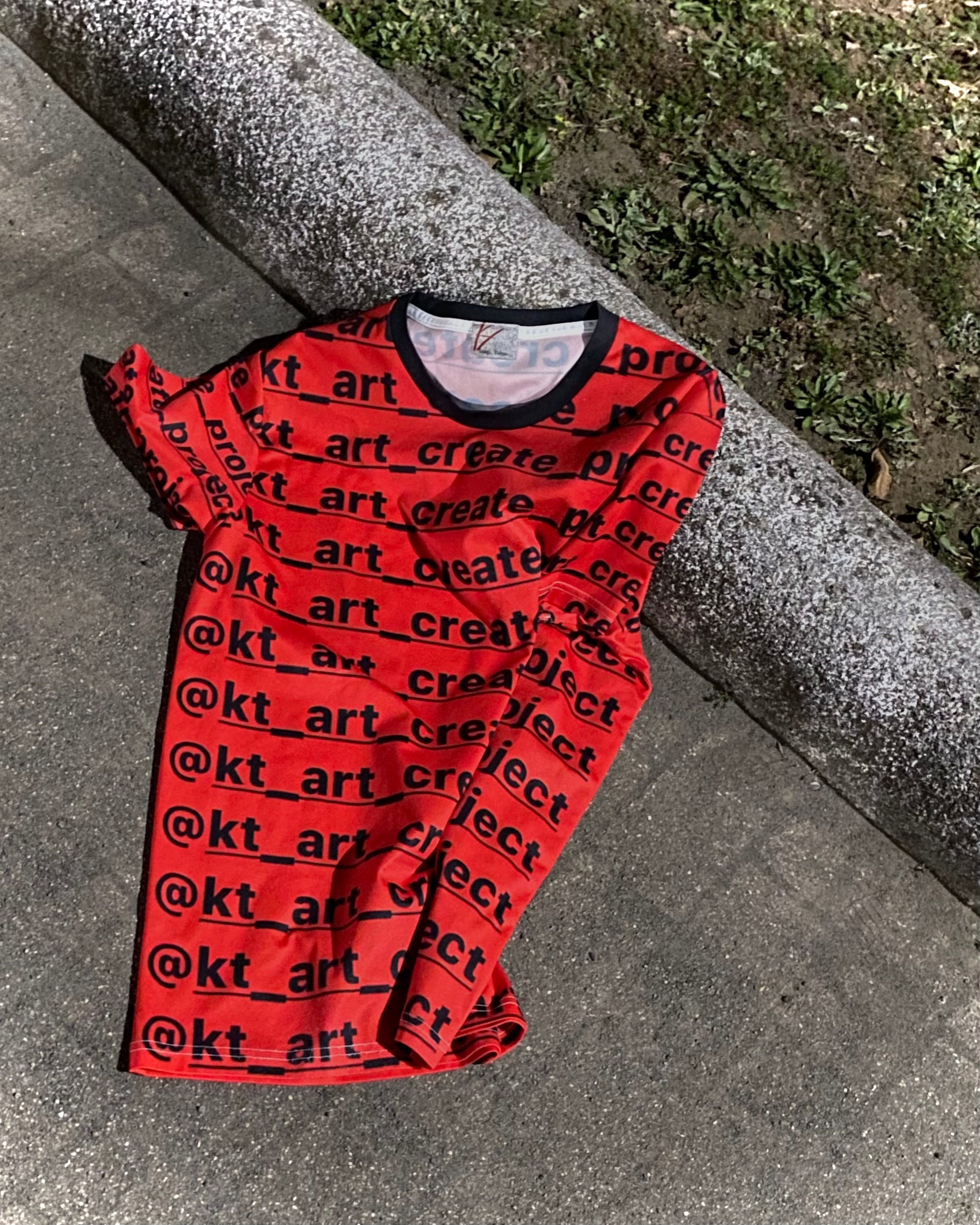 倉持達哉(もっちー)によって2022年からスタートしたInstagramのArt-projectアカウント@kt_art_create_projectのユーザーネームを連結させ、ボーダー柄に見立てたカットソーです。